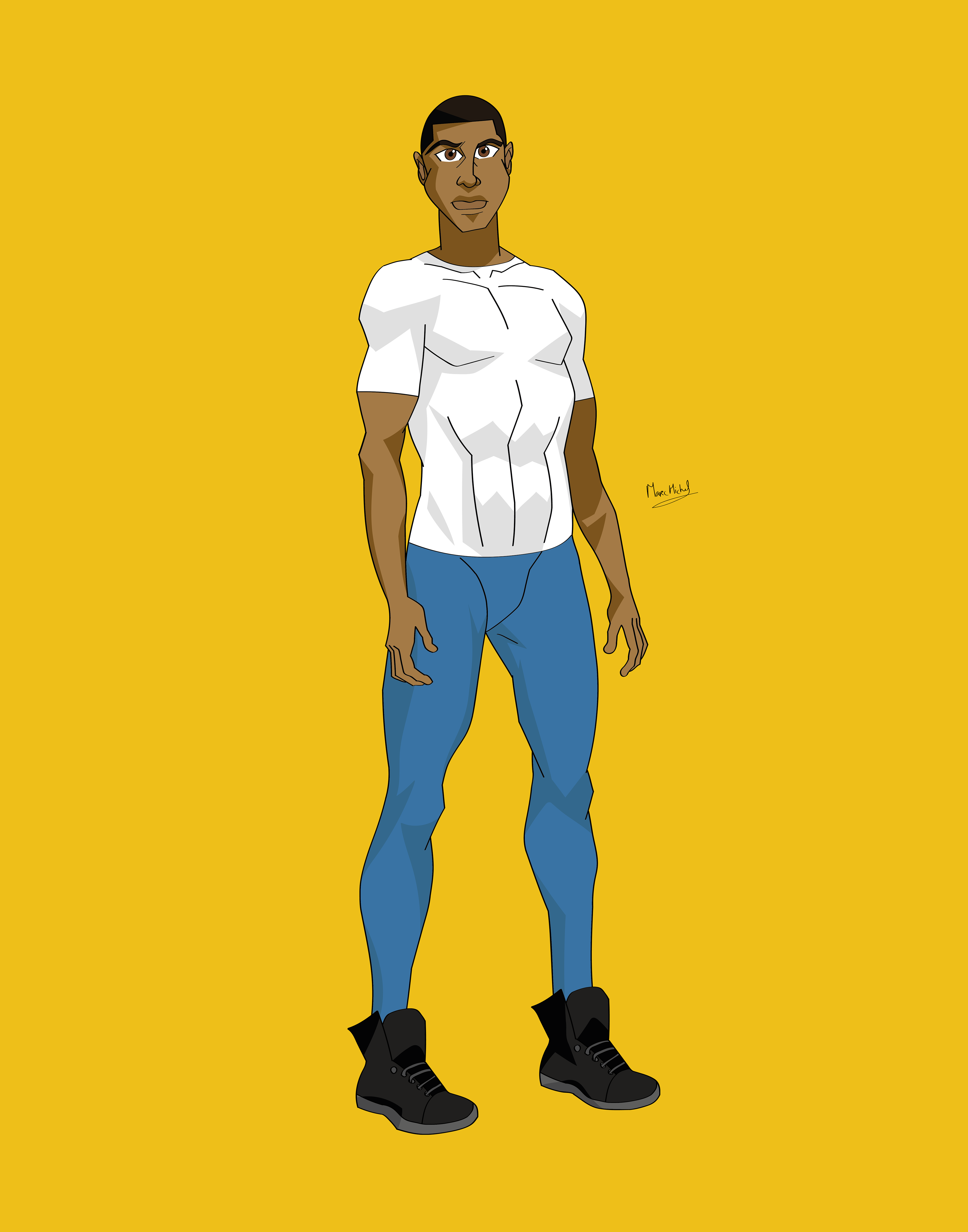 I decided to challenge myself by designing a new type of superhero; young and dressed in modern civilian clothes and not in a costume with a cape. He has the ability to fly, see the future and heal others of their injuries but not always himself.