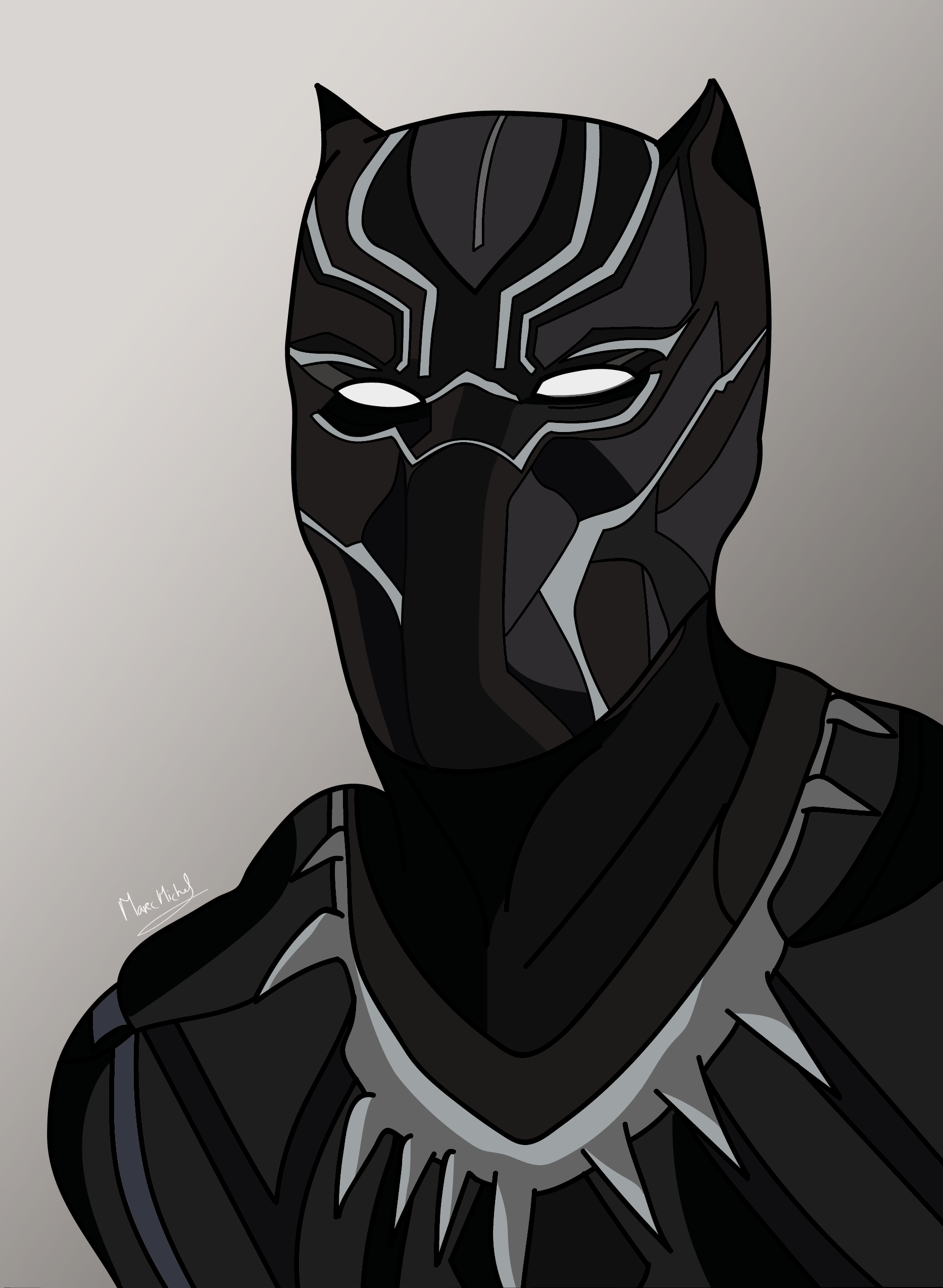 Black Panther, Warrior and King of Wakanda. Illustration based on the 2016 Marvel/Disney film "Captain America: Civil War".